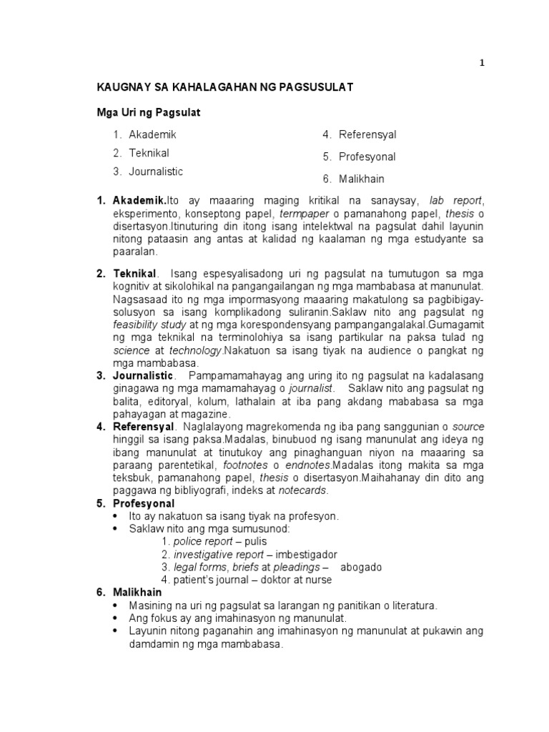Doc Mga Uri Ng Pagsulat Eugene Tandoc Academia Edu