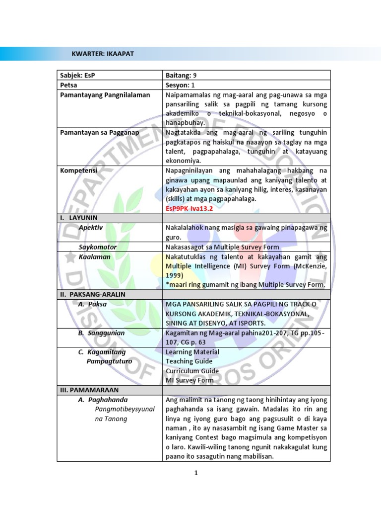 Pdf Daily Lesson Log Pang Araw Araw Na Tala Sa Pagtuturo Unang Araw Modyul 13 Mga Pansariling Salik Sa Pagpili Ng Tamang Kursong Akademiko O Teknikal Bokasyonal Sining At Isports Negosyo O Hanapbuhay Belinda