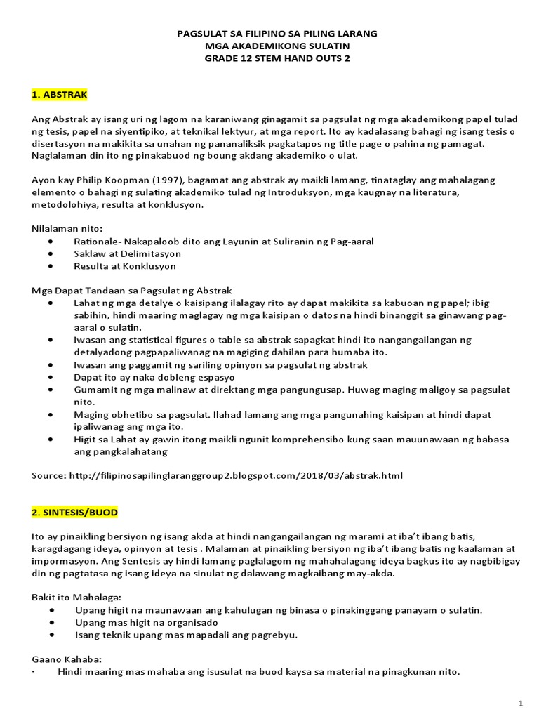 Pdf Filipino Sa Larangang Akademiko Kabanata Iii Pagsulat Ng Buod At Sintesis Jobasces Marin Academia Edu