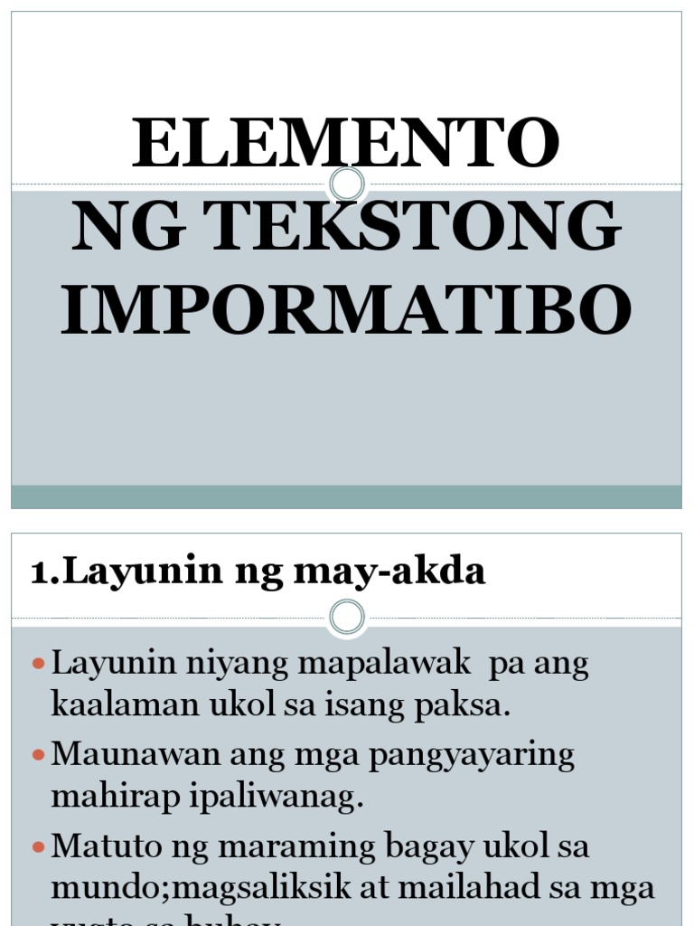 Elemento Ng Tekstong Impormatibo