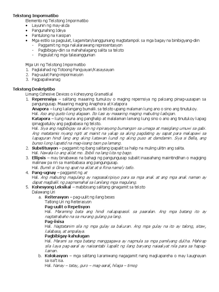 Paggamit ng mga nakalarawang representasyon Pagbibigay-diin sa mahalagang salita sa teksto Pagsulat nga mga talasanggunian Mga halimbawa Mga Uri ng teksto Impormatibo. Isulat Ito Kung Kinakailangan 4 Sa Pagsulat Ng Tekstong. Anong uri ng tekstong impormatibo ang binasa.