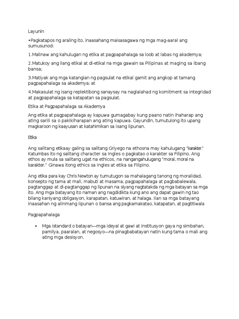 Etika At Pagpapahalaga Sa Akademiya