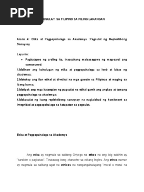 Fil B Pptx Etika At Pagpapahal Aga Sa Akademiya Pagsulat Ng Replektibong Sanaysay Abottanaw 1 Nalilinaw Ang Kahulugan Ng Etika At Pagpapahalaga Sa Course Hero