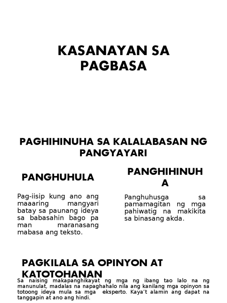 Mga Kasanayan Sa Mapanuring Pagbasa