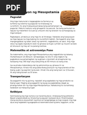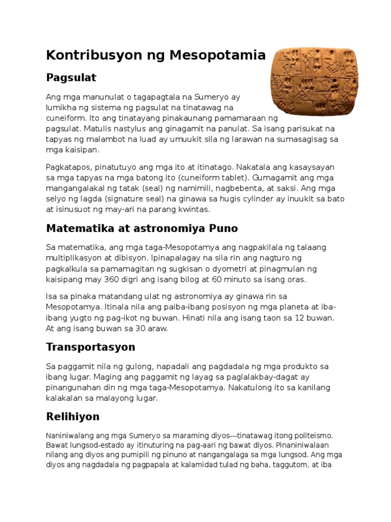 Ano Ang Ambag Ng Mesopotamia Sa Larangan Ng Pagsulat At Inhenyeriya Brainly Ph