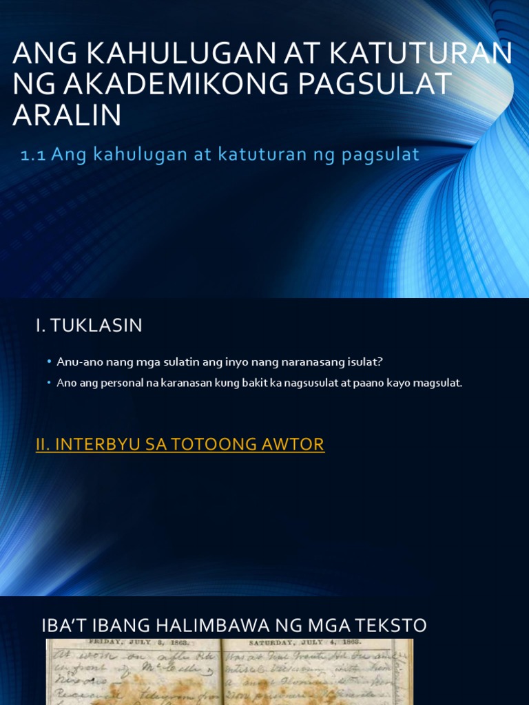 Aralin 1 1 Ang Kahulugan At Katuturan Ng Akademikong Pagsulat