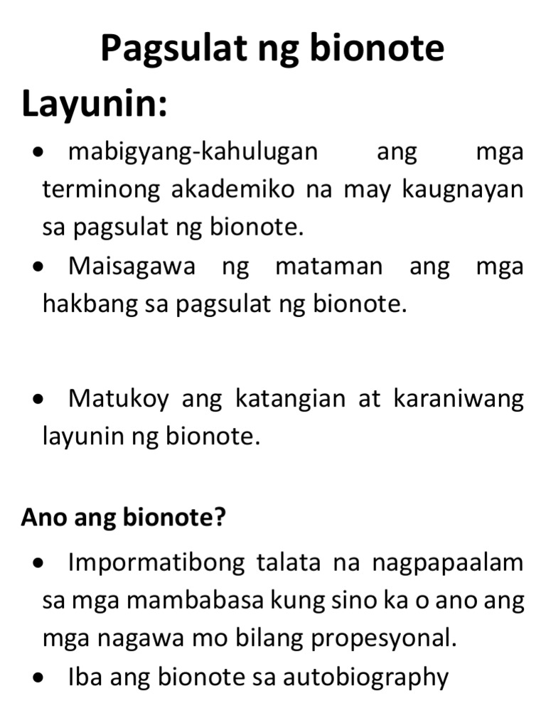 Layunin Ng Bionote Na Bionote Ang Kahulugan At Mga Halimbawa