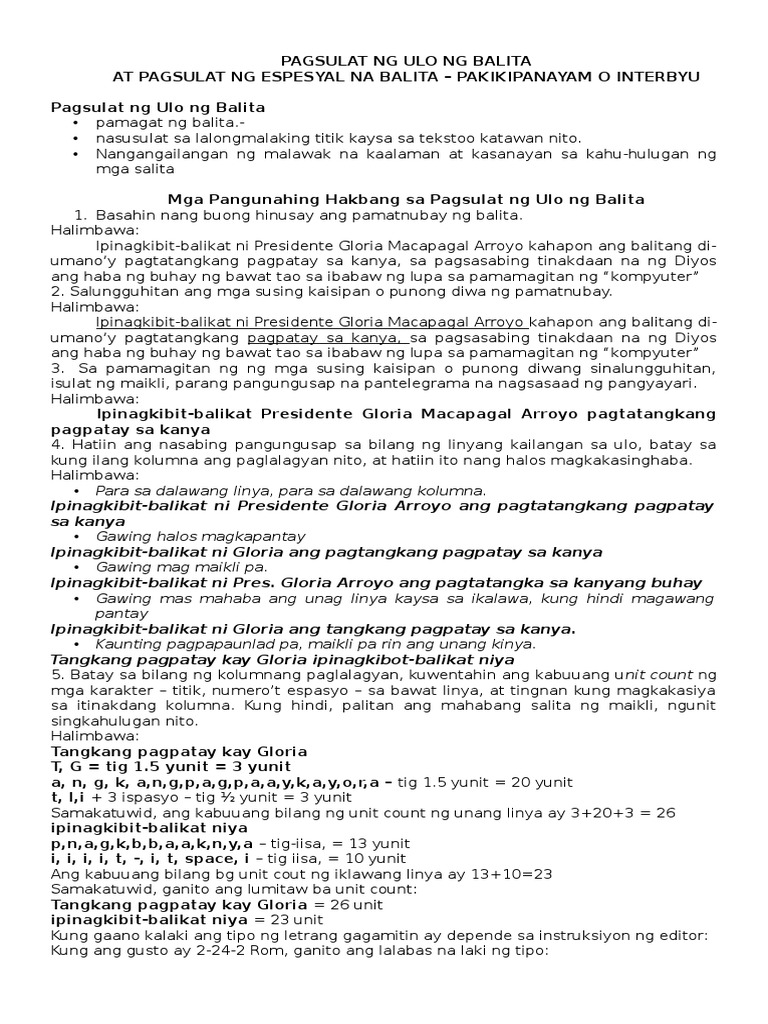 Ano ang mga hakbang sa pagsulat ng balita o komentaryo. Halimbawa ng Balita. Talataan sintaks pagpili ng mga salita ispeling bantas at gamit ng malaking titik at kabuuan. Karaniwang naiiwan ang mahalagang pananaw ng kinapanayam na makatutulong nang malaki.