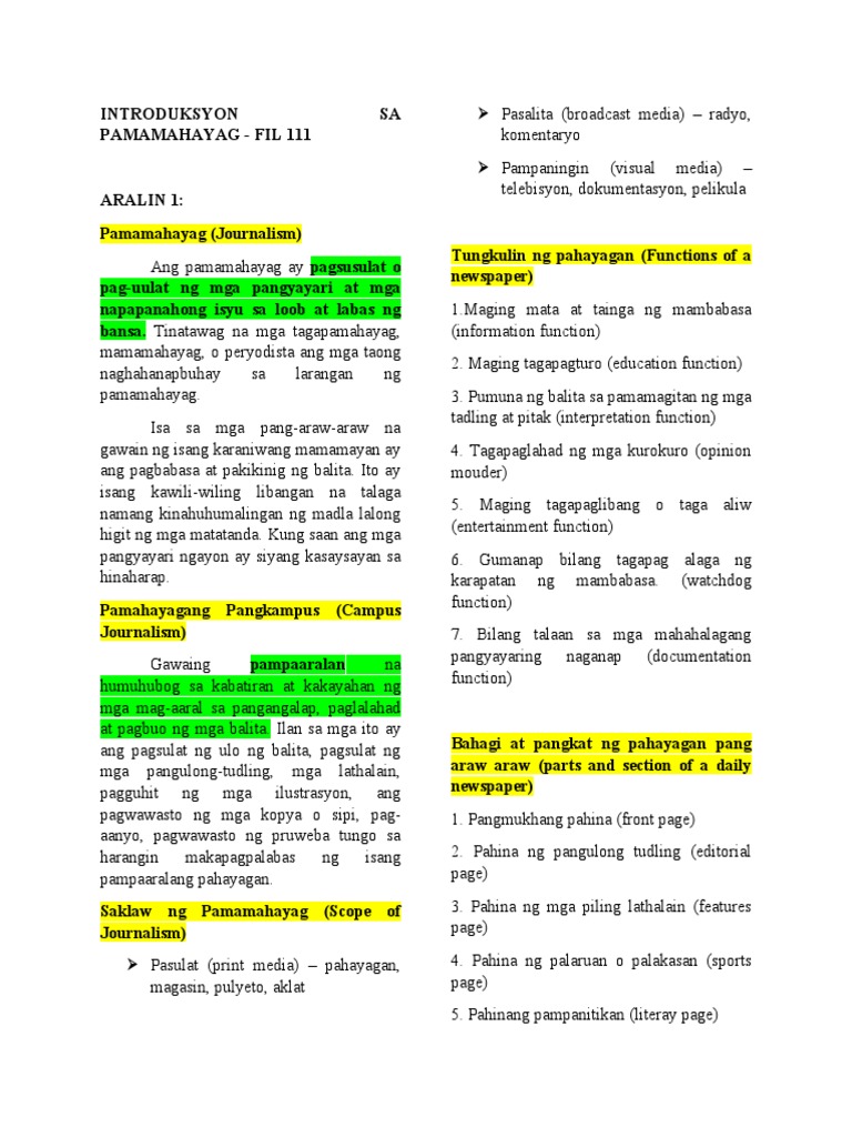 At depende sa uri ng komentaryo na gagawin maaaring masusing komentaryo o mapanira. Itinakbo ang babae sa hospital ngunit siyay na dead-on-arrival. Banggitin ang awtoridad o pinagmulan ng balita lalo na kung 1 nangingibabaw ang opinyon kaysa tunay na pangyayari 2 ang balita ay kontrobersyal at 3 ang balita ay nagpapatalastas ng bagong regulasyon.