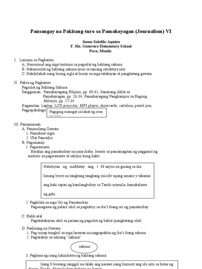 Banghay Aralin Sa Pagsulat Ng Balita Journalism