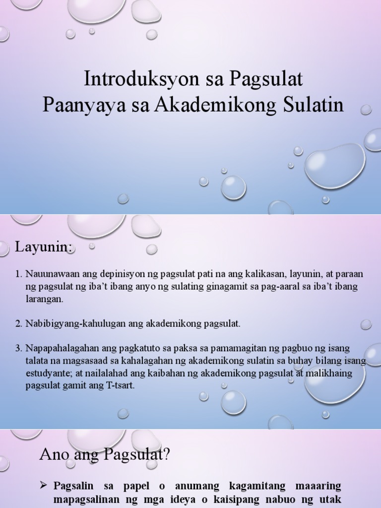 Iba pang kahulugan ng akademikong pagsulat. Ang umangkin ng alin mang bahagl o arl ng Kalikasan ay pagnanakaw. AKADEMIKONG SULATINPAGSULAT Isang makrong kasanayan. Pagtalakay sa mga tuntunin ng paaralan.