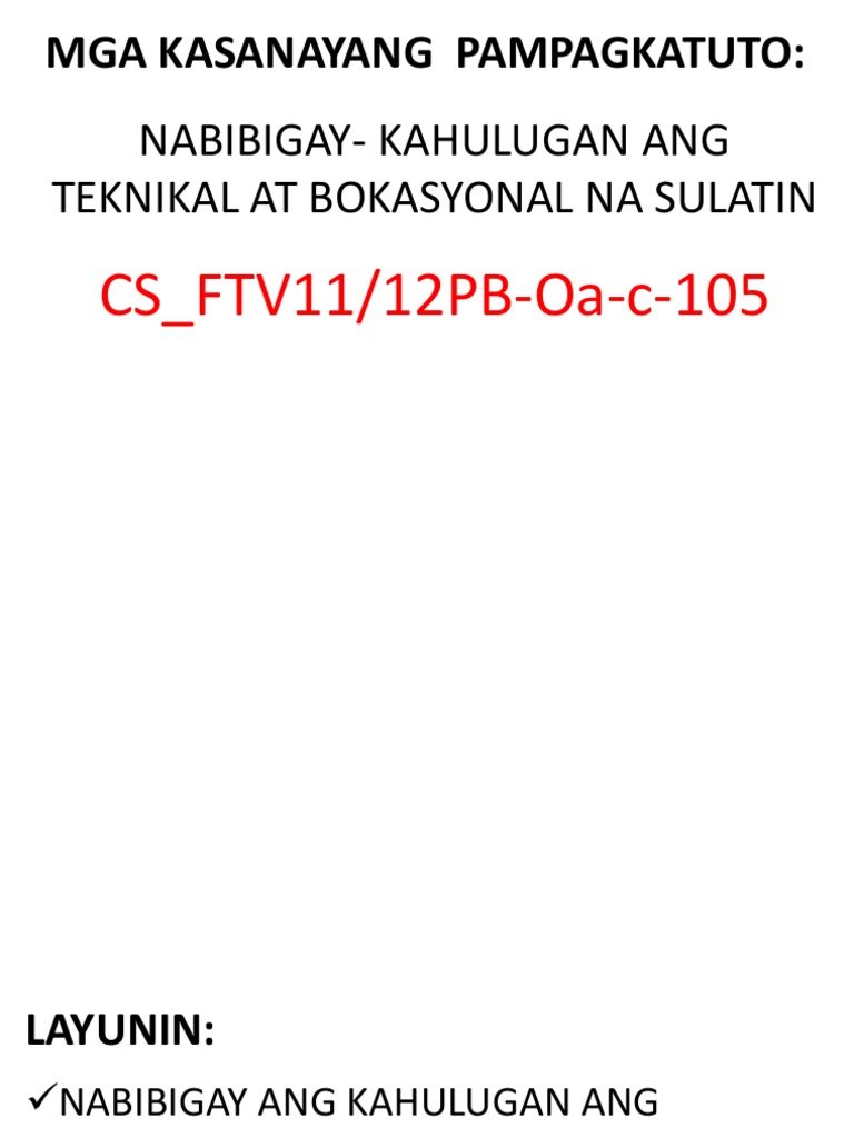 Aralin 2 At 3 Teknikal At Bokasyunal Na Sulatin Ayon Sa Layunin Gamit Shs Grade 11 12 Melcs Youtube