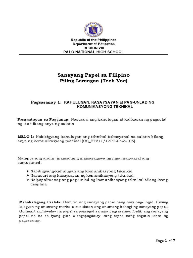 Modyul1 Sulating Teknikal Bokasyonal Filipino Sa Piling Larang Tech Voc Youtube
