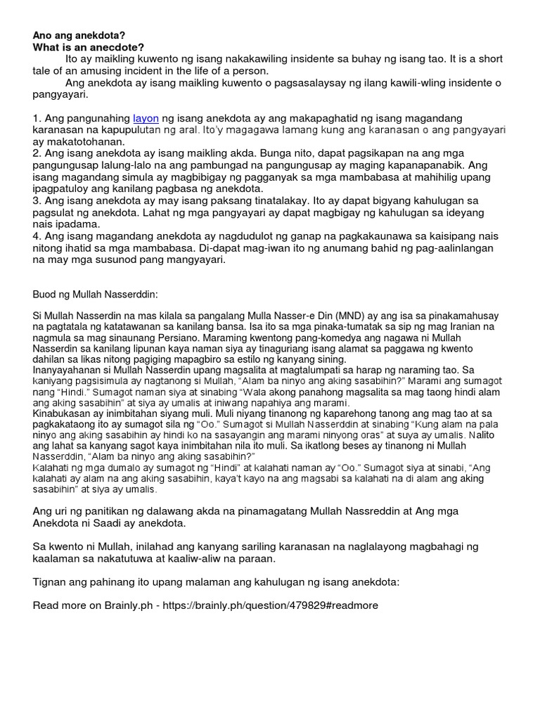 Ano Ang Paraan Ng Pagsulat Sa Anekdotang Mullah Nassreddin Brainly Ph