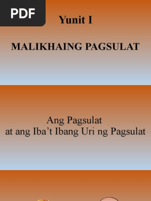 Documents Similar To Estruktura Ng Proseso at Mapanuring Pagsulat 3. Ang Malikhaing Pagsulat ay anumang pagsulat na lumalabas sa mga hangganan ng karaniwang prupesyonal pamamahayag pang-akademiya o teknikal na nga anyo ng panitikan na pangkaraniwang nakikilala sa pamamagitan ng pagbibigay ng diin sa kagalingan o kasanayang pansalaysay pagpapaunlad at pampanitikan. Ang Pananaw Aralin 5.