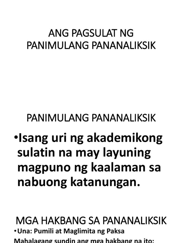 Ang Pagsulat Ng Panimulang Pananaliksik